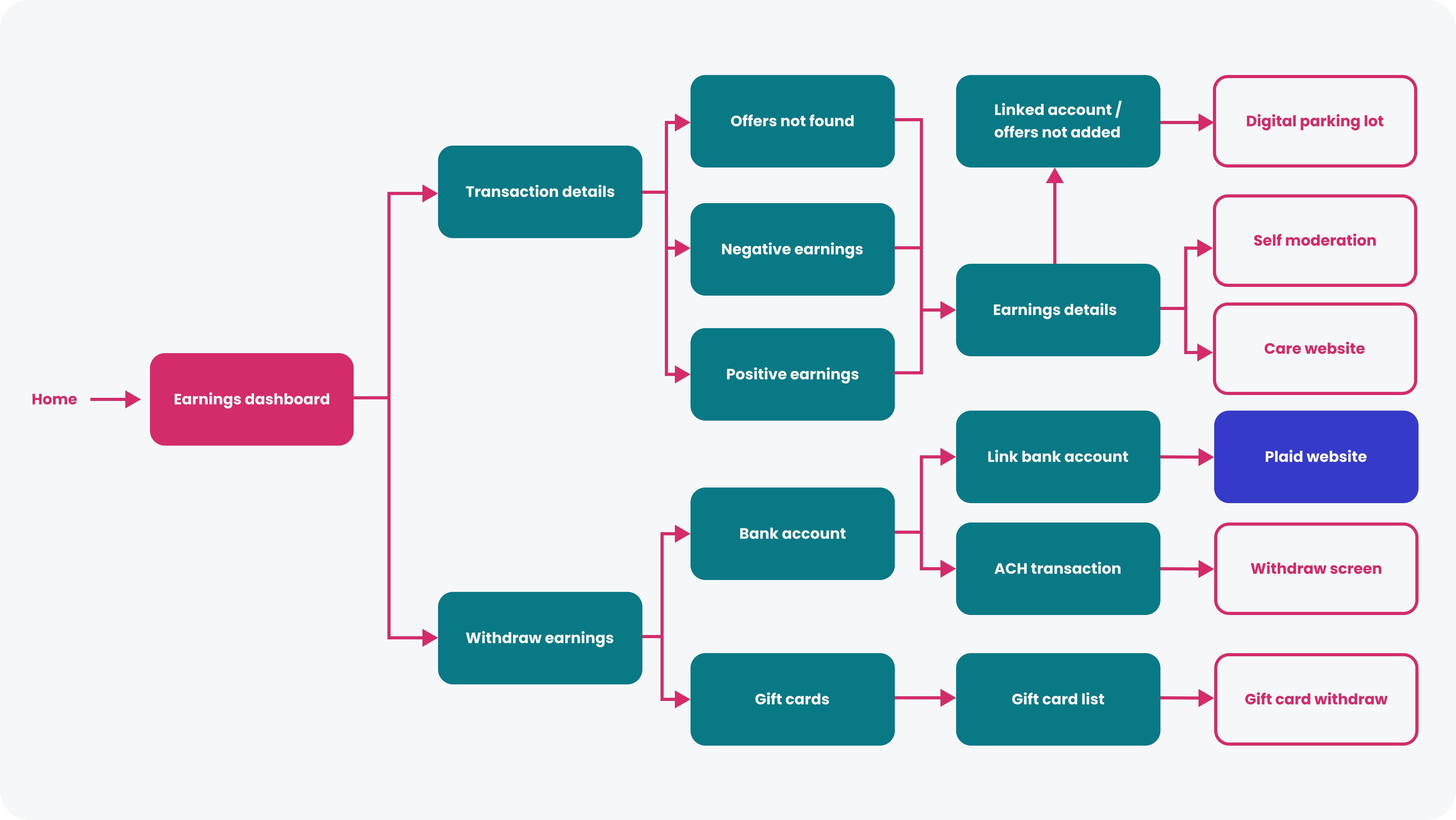 The previous Earnings experience suffered from too many screens, creating friction and slowing users down. I led a reductive strategy, mapping a new, streamlined product flow that eliminated unnecessary steps and simplified the user journey, ensuring that users could access key actions quickly and intuitively.