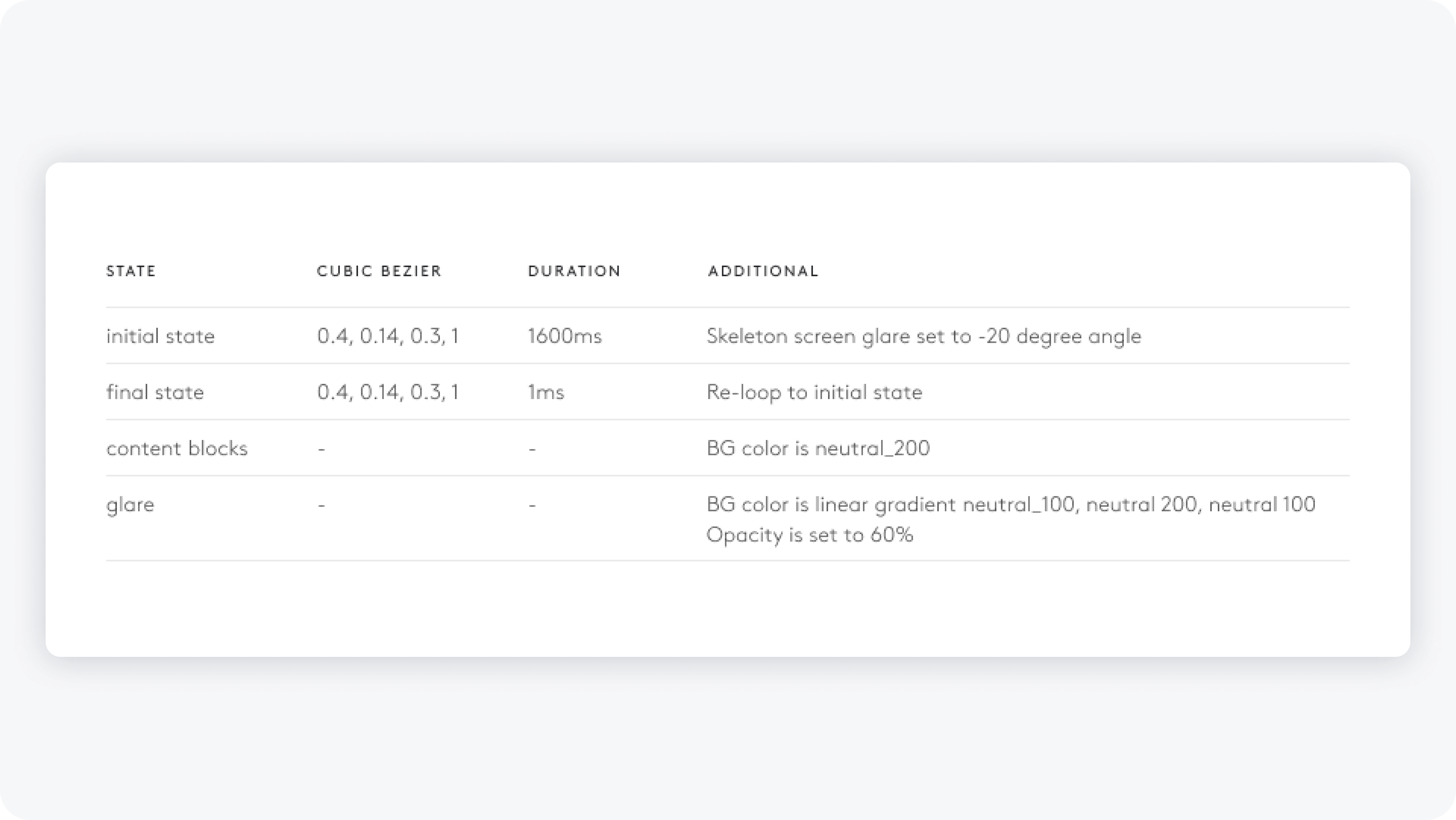To ensure high-fidelity implementation across iOS and Android, I authored detailed motion specifications for every design system component, defining easing curves, durations, and staggered delays.