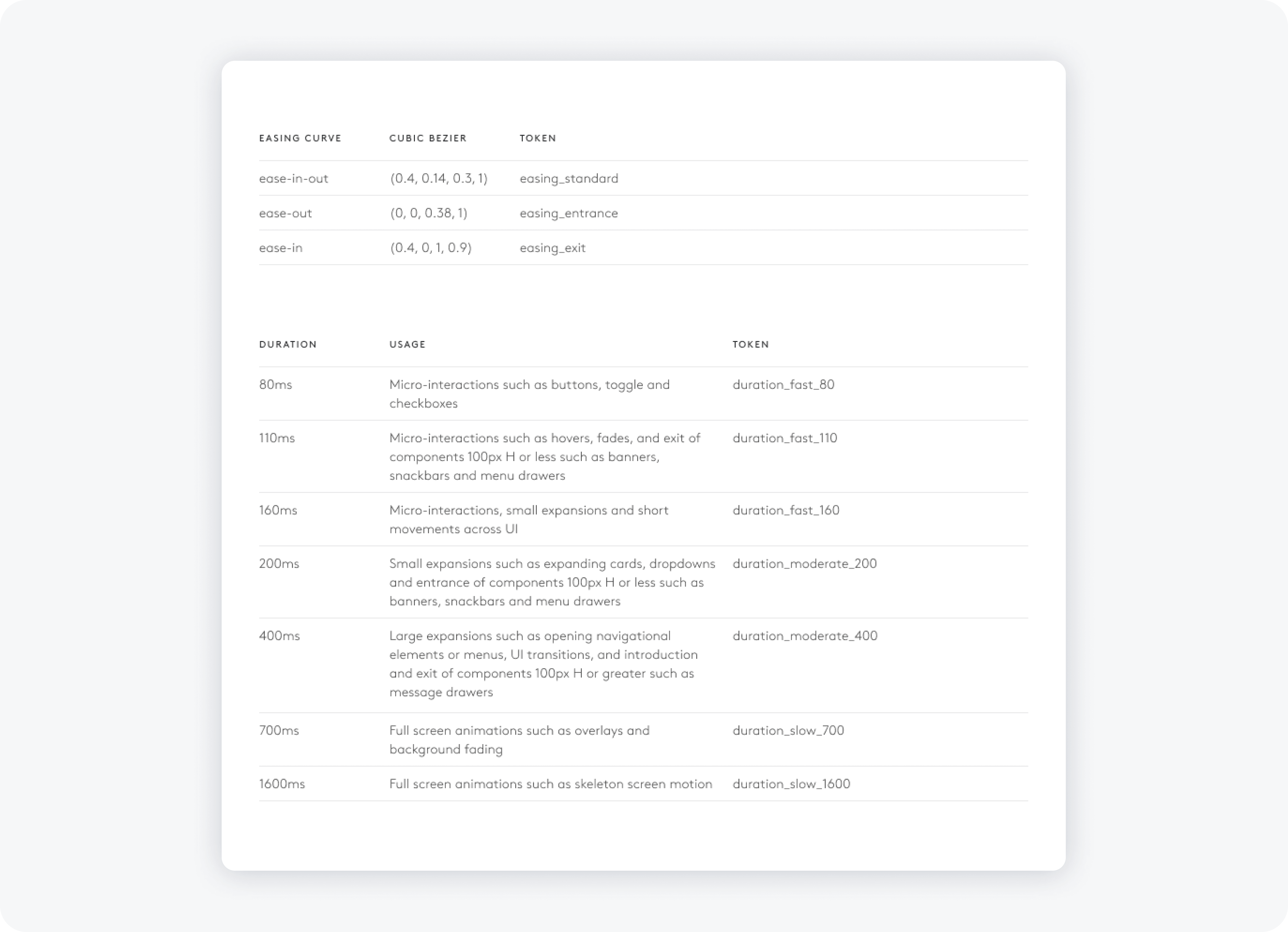 Tokenizing motion not only kept interactions predictable but also streamlined future updates to the design system–standardizing easing and duration (mapping to CSS variables and JSON structures) across products.